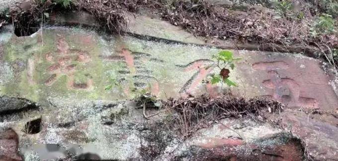 张庭题写的“五兀书院”崖刻,位置在千佛岩铁石关山崖高处(图源:夹江发布)