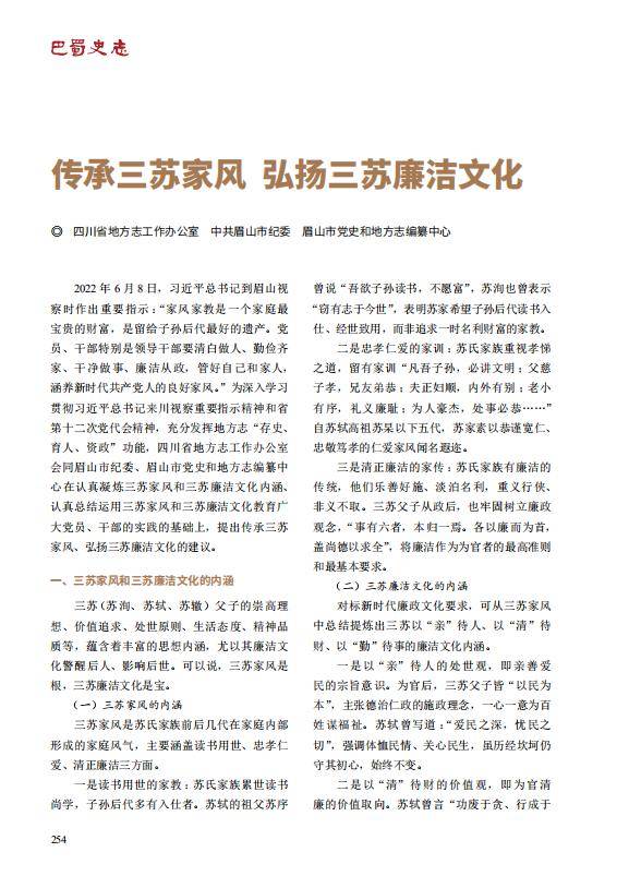 【文史英华】传承三苏家风 弘扬三苏廉洁文化