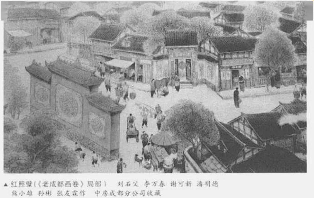 成都市红照壁(《老成都画卷》局部,图片来源:成都市情网)