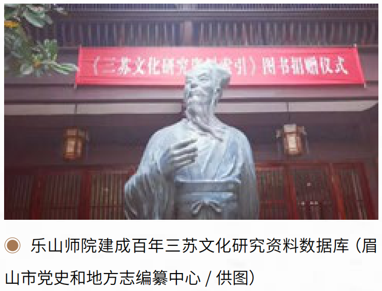 继1999年成为全国第一个设立三苏文化研究机构的高校、2000年在学报上开辟三苏研究专栏之后,乐山师范学院从2002年开始利用现代信息技术,历时十余年建成能提供多种检索途径的“百年三苏文化研究资料数据库”,并长期进行数据维护、补充和更新,2021年出版《三苏文化研究资料索引(1911—2017)》。