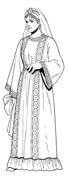 在此后的中世纪时期,拜占庭帝国的服饰基本上继承了古罗马帝国末期的服装样式。如长袖外衣达尔玛提卡,是由丘尼卡发展而来的。