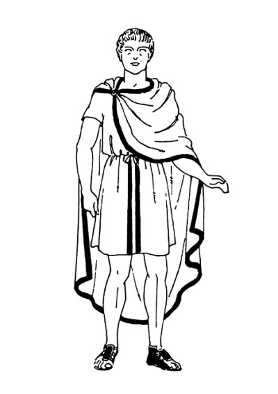 托加是最能代表古罗马人身份的服装,因为只有拥有罗马市民权的人才可以穿着,它也被称为世界上最大的衣服。早期托加是男女都普遍穿着的一种长袍,是由古希腊人的长外衣希玛申演变而来。面料一般采用羊毛织物,穿着后会从肩膀延伸至脚踝。在后期的发展过程中,托加成为男性专有的服装,并逐渐被赋予礼服的属性。在古罗马的鼎盛时期,托加的长度甚至达到了六米,穿在身上显得厚重且臃肿。随着古罗马帝国的衰落,托加也失去了原有的光辉,它的尺寸被一再缩小,直至拜占庭时期成为一条宽约20厘米的带状物,到了公元7至8世纪逐渐消失。为了体现崇高与庄重,托加这类服装笨重、穿着复杂,几乎无法一个人独立完成。它冬季不能保暖,在夏季既沉重又闷热,并且束缚了人的活动,因此穿着的舒适度很低。