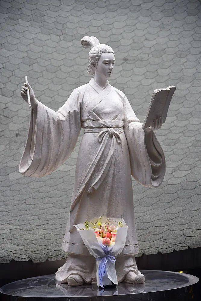 眉山三苏祠中,程夫人和女儿八娘的石像