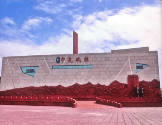 中流砥柱馆规模居各馆之首,展厅面积2435平方米,是一个桔红色的方形馆,位于主道路最前方,是游客参观的第一站。它以历史照片、资料、实物、文献以及地道战、地雷战、青纱帐场景复原或实景景观等方式陈列,通过3个主题单元生动展示出中国共产党及其领导下的军队、敌后民众8年全面抗战情况,突出反映了中国共产党代表全中国人民的意志,领导和推动了伟大的抗日战争,浴血奋战于抗战最前线,成为全民族团结抗战的中流砥柱的光辉历史。