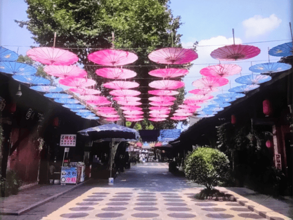 这条街上的油纸伞是一大亮点。安仁古镇的巷子里有许多油纸伞店铺,其中“国家非遗油纸伞”店铺位于裕民街39、41、43号。这是一家极具文艺气息的油纸伞店,店内的油纸伞面绘着各式花样,清新、素雅、水墨、吉祥、喜庆等风格,应有尽有。