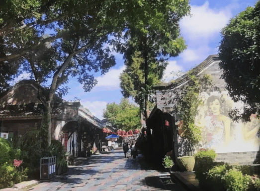 公馆老街的条条街道上悬挂着灯笼、鸟笼、油纸伞等,仿佛在述说流逝的时光。游人们脚踏在青石板上,恍若隔世,不免产生历史的厚重感。