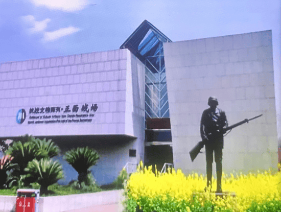 正面战场馆位于中流砥柱馆旁,取国共合作抗击日军之意,建筑面积1299平方米,是一座素白色的方形建筑。该馆简要介绍了1931年至1937年国民党政府从避战到抗战的历史,主要以国民党军队在抗日战争中的22个重大战役为主要展示内容,真实重现了中日军队对决场景。同时,展现了抗战期间空中战场的艰难残酷和中国空军敢于以小搏大、以弱战强的无畏精神。