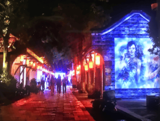 夜幕降临后,公馆老街变得无比神秘,让人感觉仿佛置身于一部穿越时空的电影中,如梦似幻。街道两旁的建筑在灯光映衬下放射出迷人的光泽,每一匹砖、每一片瓦、每一块青石板、每一幅画面都在诉说古老的故事,让人尽享一场视觉上的盛宴。