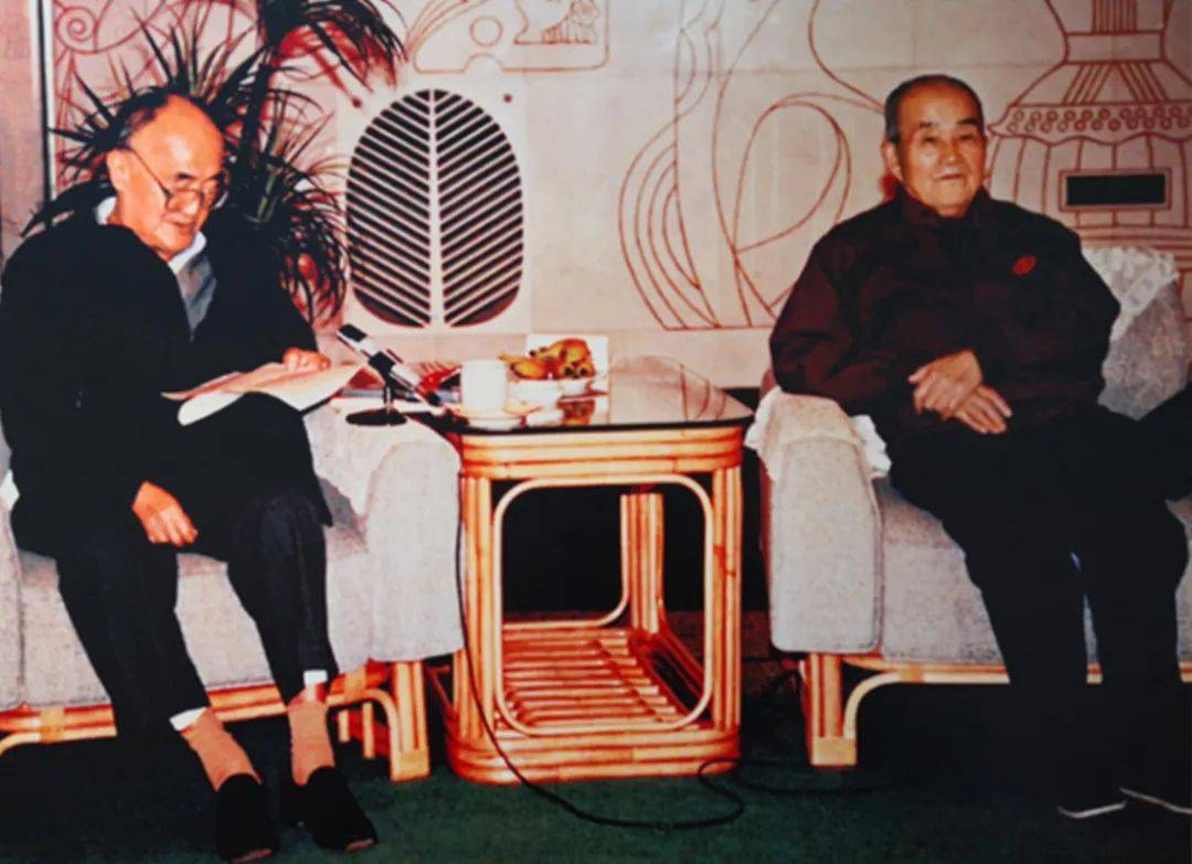 1990年10月27日,胡乔木(右)与胡绳在纪念李达同志诞辰100周年座谈会上