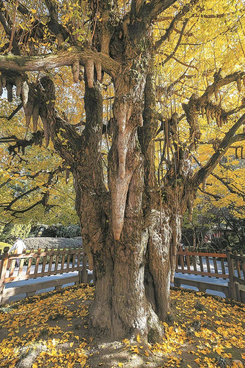 “张松银杏”长满了倒悬的“白果笋”,因长在枝上,又称“天笋”。