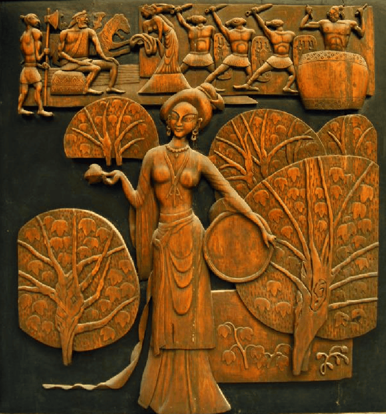 《中华之母——嫘祖栽桑养蚕抽丝编绢图》 石小玉 作(图源:中华母亲嫘祖网)
