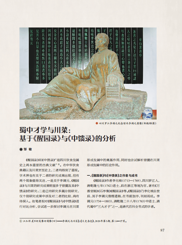 【文史英华】蜀中才学与川菜:基于《醒园录》与《中馈录》的分析‖邹 敏