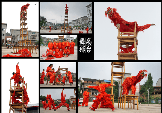 除了川剧,高台狮舞也是雁江一大绝活。表演者在垒起的方台上旋转跳跃,动作惊险,扣人心弦。高台狮舞有3大特点:高、险、奇,高空鹏展、金鸡独立、双龙抱柱、雄狮卧睡等高难度动作配合鼓点,让观众赞叹不已。资阳市雁江区堪嘉镇高台狮舞团更是搭建10米高台,将这项传承了500年的技艺发挥到了极致。