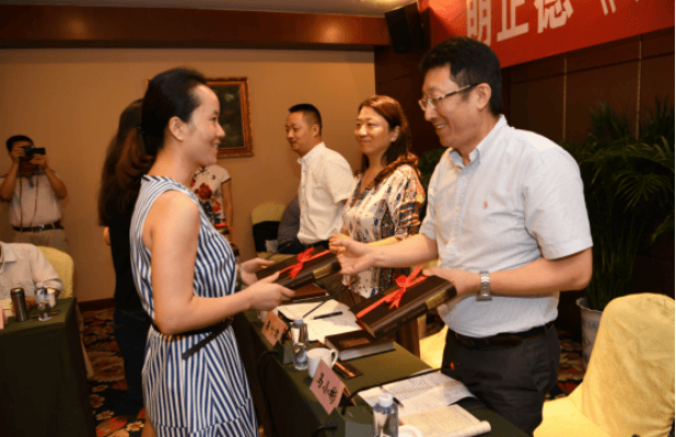 2016年7月20日,蓬安县举行明正德《蓬州志》点校发行座谈会。省地方志办主任马小彬(右一)向参会人员赠送《蓬州志》。