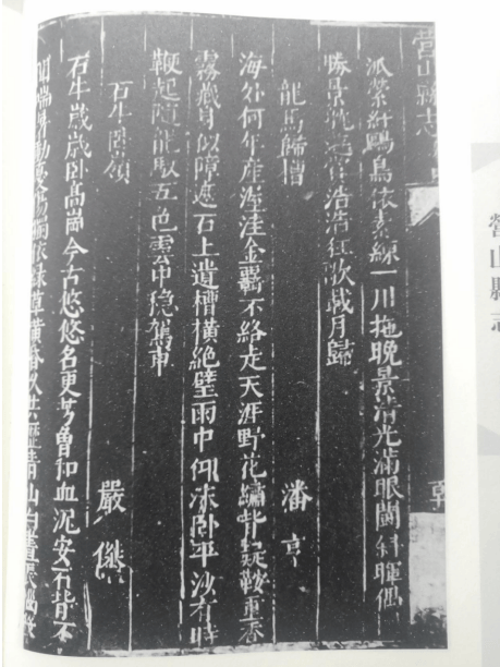 总的来说,与明万历版所载诗文相比较,乾隆版只有3处4字差异,但在更晚的同治版中,则有7处10字的差异。造成这样的原因,笔者猜想应是明代的原诗内容所载文字已是漫漶缺失不清,故而这两次修志抄录时,就是由当时修纂之人根据诗意人为添加所致。