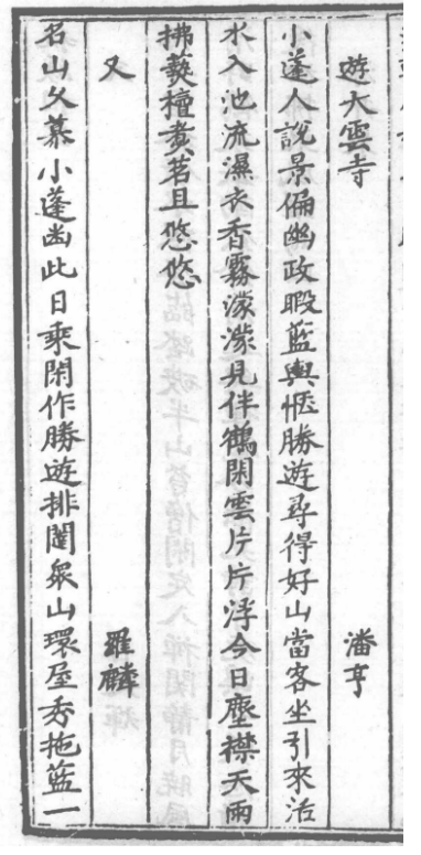 这首诗在明清统编版里载名为《游大云寺》。天一阁明万历《营山县志》只载太平寺:在县北二十里,宋淳熙十六年建。无大云寺的记载。