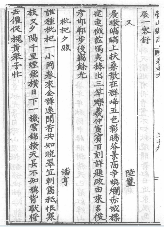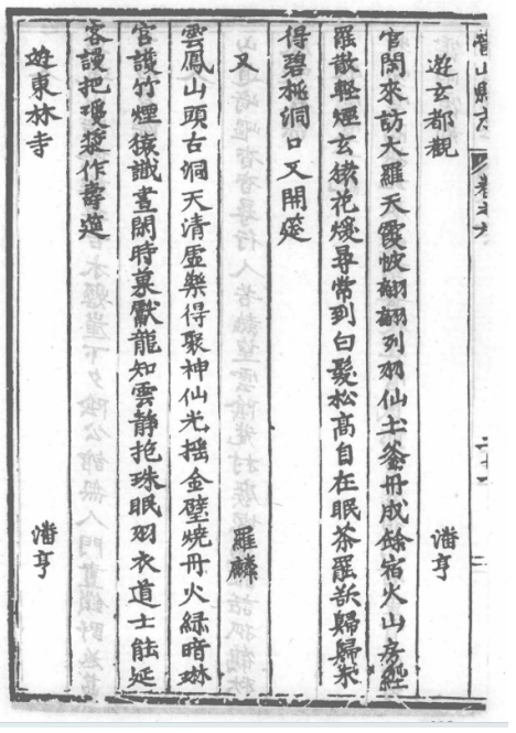 首先是诗名。最早天一阁中所载为《遊玄都观》,而在清代的两个版本县志中诗名都变成了《遊雲鳯山》。