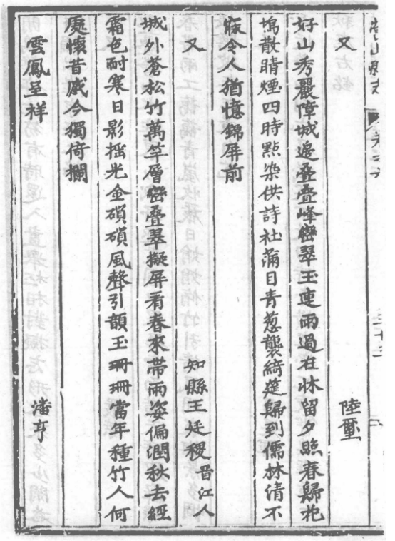 现依明万历《营山县志·艺文》所载潘亨诗的先后顺序,依次附诗、截图于后: