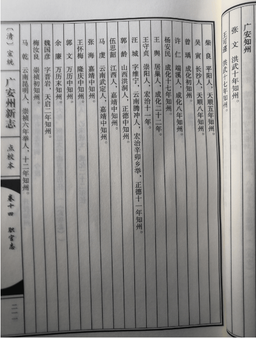 我们这里姑且不论《广安州志》在职官里记载张海和潘亨到底是广安州的知州和州同知,还是顺庆府的知州和州同知,单说同样是这两个人,记载的时间却与《顺庆府志》记载的成化年间,相差很大。