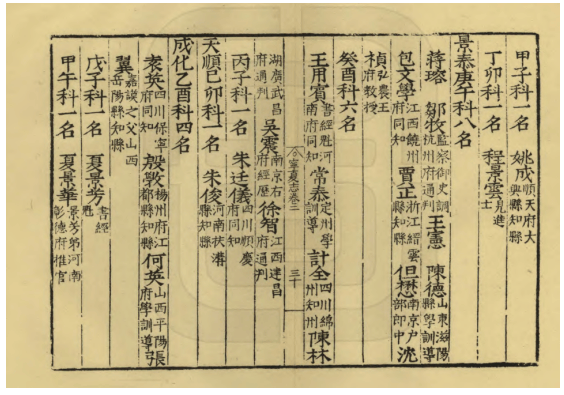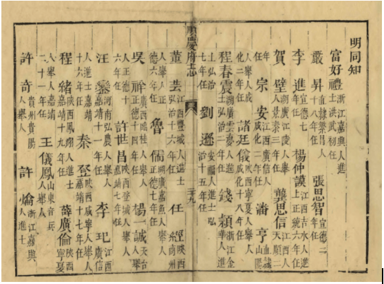 《宁夏新志》是嘉靖十八年杨守礼主持纂修的,景泰丙子科只考取朱迋儀一名举人,《宁夏新志》对于朱迋儀的中举时间和顺庆府任同知一事都记载得非常清楚。故康熙二十年由李成林编纂的《顺庆府志》所记载的诸廷儀应是有误,准确记载应该为:朱迋儀。