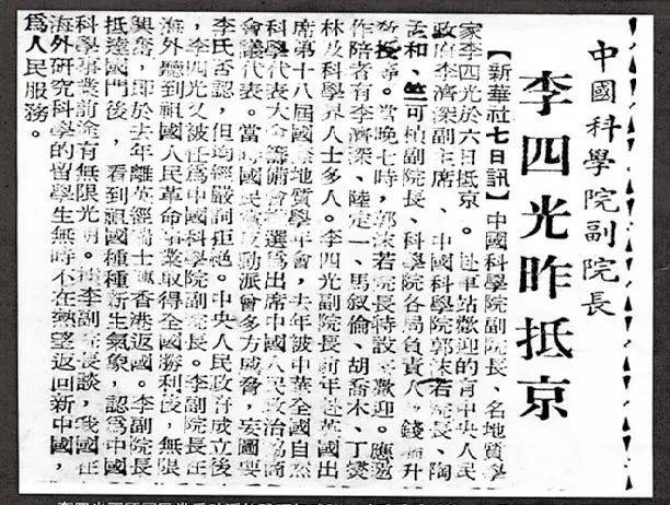 1950 年5 月8 日,《人民日报》报道李四光回国的消息。