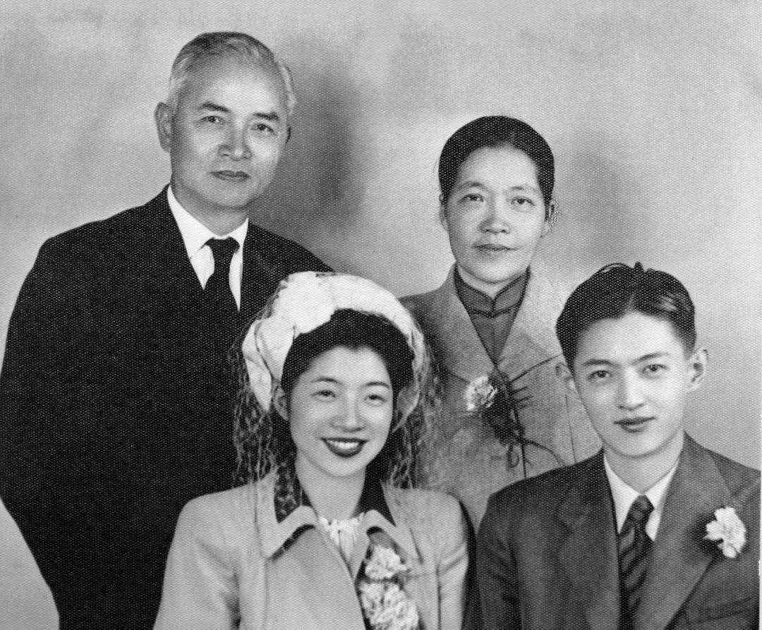 1949 年8月25日,李林、邹承鲁在英国海滨城市伯恩茅斯结婚时留影(后为李四光夫妇)