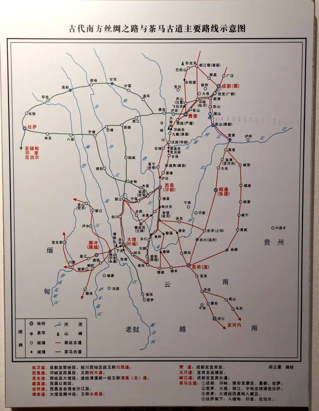 古代南方丝绸之路与茶马古道主要路线示意图(蓬州闲士摄于邛崃市临邛镇邛窑考古遗址公园,图源:四川方志图库)