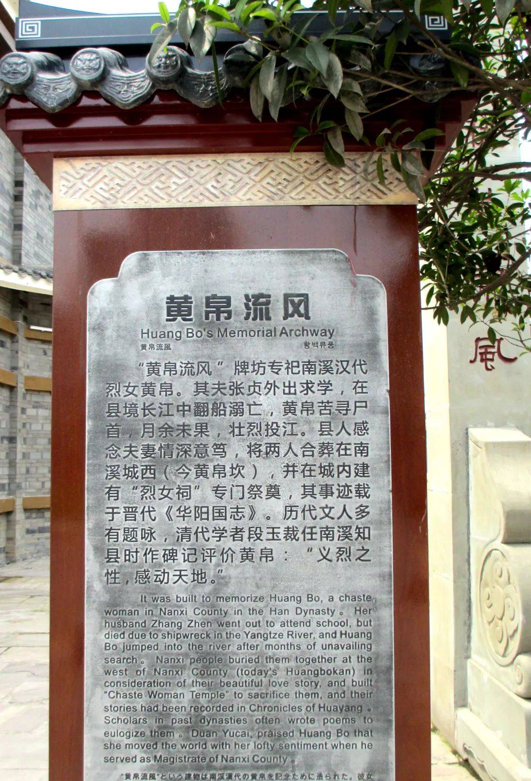 如今,南溪区境内还有鸳鸯圻、鹭鸶碛、贞溪桥、烈女祠、汉烈女坊、烈女坟、黄帛坎等多处与黄帛相关的文化遗址或遗迹。
