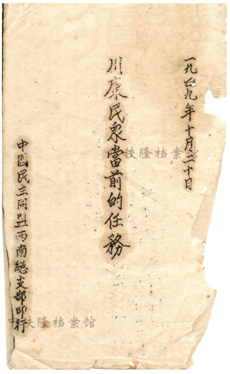 一、川康民众当前的任务(中国民主同盟西南总支部印行,1949年10月20日)