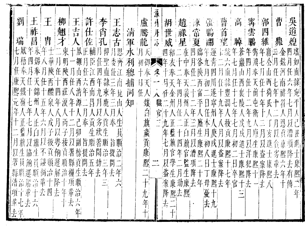 从康熙十三年到二十四年,先后有高晫、曹首望、张鹏翮、陈常夏、赵禄星五任苏州知府。康熙《苏州府志》的编修,断断续续进行到赵禄星手里,终于要完工了。康熙二十三年,王新命调抚江苏巡抚时,苏州知府赵禄星即以《府志》序为请,可见,康熙《苏州府志》在王新命调任两江总督的康熙二十三年五月前即已修成,赵禄星前后向两任江苏巡抚王新命、慕天颜请序的同时,也是让府志由本省最高长官审查内容。赵禄星负责的就是“鸠工缮刻、营赀赡给”。