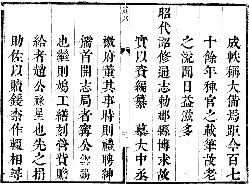 清代明文规定,地方官上任要奉行三十二条“初规”,按施政先后程序排列,其中第三条就是“览志书”。地方官不仅要首读地方志,了解当地风土人情,而且把修地方志作为任上的大事要事。修志这活可不容易,地方官奉宪纂修,既要督工,更要躬身入局,捐俸禄、拉赞助,刷脸面、请硕学,勤调停、亲裁定,往往完成一部地方志要经过几任主官之手,成如容易却艰辛。