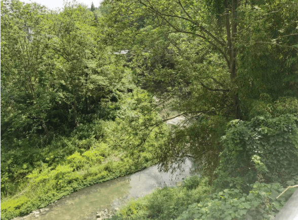 被杂草竹林环围的飞仙关镇朝阳村盐水溪