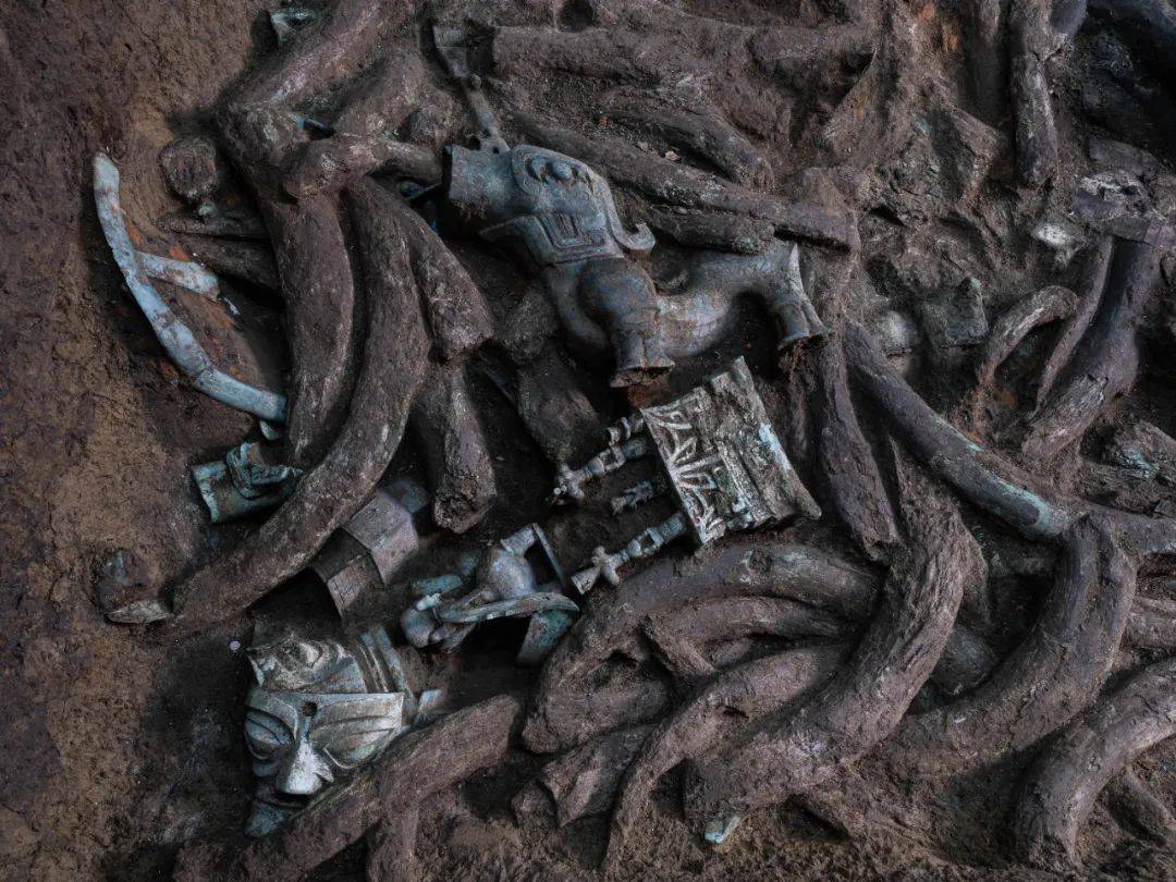 三星堆遗址发掘了八个坑,它们是什么性质的?祭祀坑还是器物坑,这是比较核心的两大争论。器物坑就是单纯埋入。祭祀坑是随着埋入的行为,还要举行一些祭祀活动。我们在发掘时可以看到,坑中的器物是一层一层摆放的,比如玉器放在一块,青铜容器放在一块,最后放象牙,很有规律,既不是毁损埋入地下,也不是仓促埋入。有的坑里还有明显的火烧痕迹,而当时古人进行祭祀的主要方式之一就是火烧。由此,我们现在基本判定,三星堆遗址属于祭祀坑,但并非第一场所。
