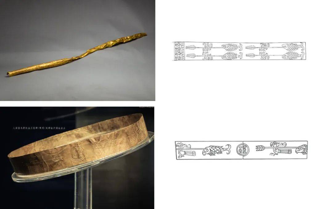 三星堆和金沙是什么关系?这是大家非常关心的问题。这两个遗址都分布在成都平原。考古挖掘证明了,两地都流行黄金面具,面具上都有鱼鸟弓箭的图案,且坑内都埋葬了大量象牙。此外,通过两地出土的陶器,可以看出存在明显的传承关系。但是,金沙遗址没有发现像三星堆遗址那样大量的大型铜人像和铜面具,所以两个遗址之间还是有区别的。从两个遗址所处的年代看,二者不仅前后衔接还略有重合。金沙遗址在继承三星堆文化的基础上,还吸收了其他文化的因素,但在信仰方面与三星堆有所不同,因此不排除是古蜀国不同势力集团权力更迭的结果。