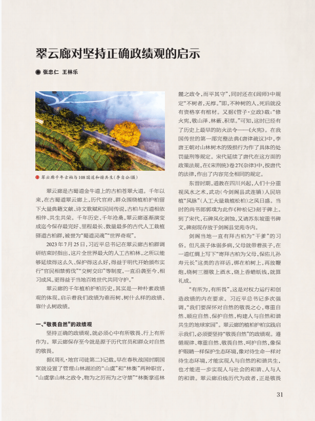 坚持正确的政绩观,就必须心中有所敬畏、行上有所作为。翠云廊保存至今就是源于历代官员和群众对自然的敬畏。
