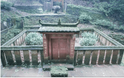 古蒙泉又名甘露井,距今已有两千多年历史,据说这是茶祖吴理真为了浇灌茶叶,在两山之间凿的井,井深数尺,井水取之不尽,用之不竭。由于水质清洁甘洌,用来泡茶会有一种奇异的香味,所以古人也称之为“甘露井”。侧立“古蒙泉”“龙井”二碑。石栏镌刻二龙戏珠。
