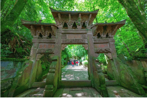 屹立于雅安市名山区域内的蒙顶山是世界茶的发源地、世界茶文明的发祥地、世界茶文化圣山、川藏茶马古道的起点、全国首批省级自然与文化遗产、国家AAAA级旅游景区。蒙顶山自古与峨眉山、青城山齐名,并称蜀中三大历史文化名山。蒙顶山景区面积为45平方公里,核心景区有5峰48个景点,其中文物古迹有18处。蒙顶山古建筑群为省级重点文物保护单位,包含多个景点。