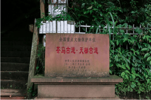 天梯古道位于山腰禹王宫至天盖寺,全长850米,有1456级,其中五分之二为后人修补,路宽1.2米,两侧有条石镶边,从433级至560级为原古道,共有127级。清代诗人称“云梯可到天”,故名“天梯”。有“随岩作天梯,直上与天齐。从此登绝顶,殊觉众山低”之说。据清代及民国《名山县志》记载,此道为大禹登蒙山旅祭的古道,也是采摘贡茶之道。2013年5月,公布为第七批全国重点文物保护单位。