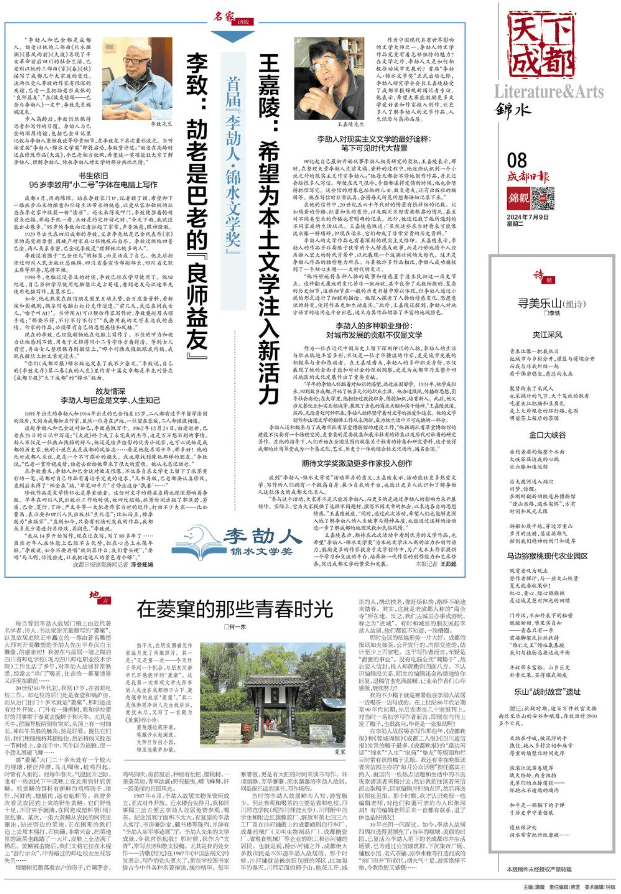 “你们(成都日报)锦水版也发表了我不少杂文。”李致说,自己的《李致文存》第二卷《我的人生》里约有十篇文章都是率先刊登在《成都日报》“天下成都”的“锦水”版面。