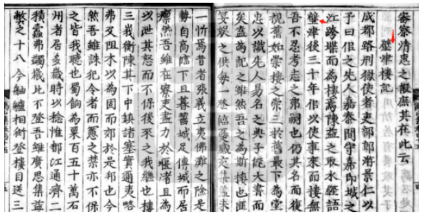 然在《重校鹤山先生大全文集》明(1368—1644)另一刻本中,收录之《璧津楼记》,“璧”字就是“壁”形了,见下图。