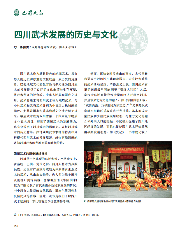 【历史文化】四川武术发展的历史与文化‖陈振勇