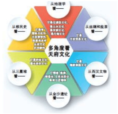 从丝绸和盐茶看天府文化。成都是古代丝绸生产地和供销地,是茶马古道起点,是食盐的重要供应地,是纸币交子的诞生地。说明天府文化是开放贸易文化。