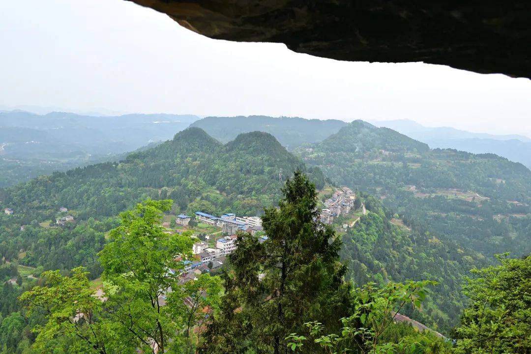 从太蓬山悬崖俯瞰双峰山(小太蓬山)及其乡村场镇