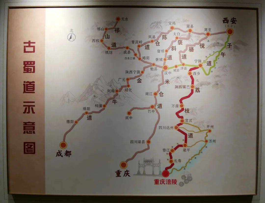 古蜀道示意图(蓬州闲士摄于涪陵图书馆之蜀道·荔枝道涪陵文献馆,图源:四川方志图库)