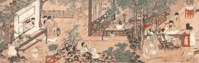 西园雅集是历代书画家笔下的经典题材。北宋元祐年间,京城中举行了一场文人雅集,苏轼、苏辙、黄庭坚、米芾、李公麟等16位名士聚于驸马王诜的西园,作诗绘画,谈禅论道。会后李公麟作《西园雅集图》,米芾书《西园雅集图记》,使之名扬天下。