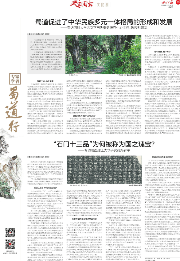 2024年7月8日,蜀道研究成果发布暨专家学者蜀道行活动在广元昭化古城举行,陕西理工大学研究员冯岁平在现场展示了蜀道之上“石门十三品”的深厚魅力。