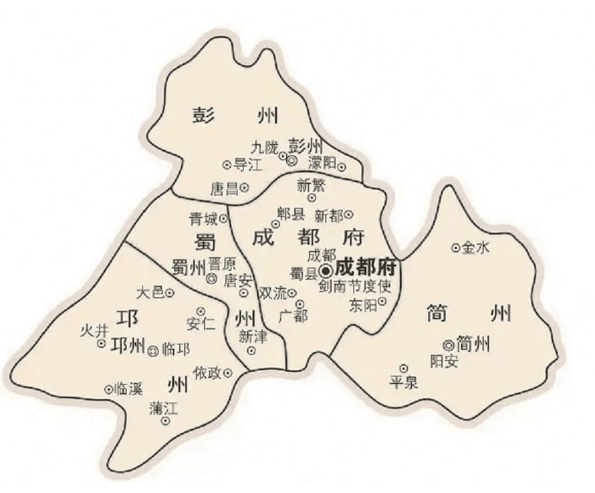 唐代成都府及彭州、简州、蜀州、邛州示意图