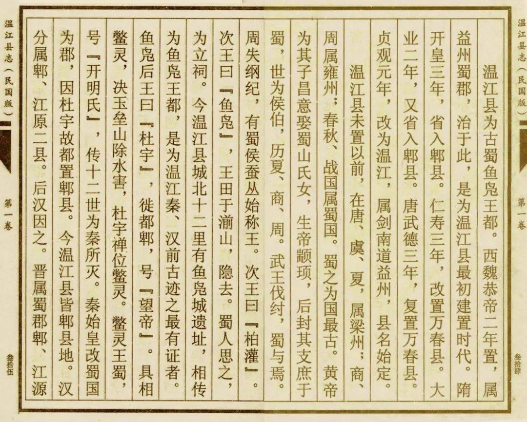 《温江县志(民国版)》影印(图源:成都市温江区地方志办公室)
