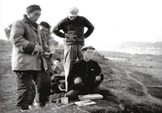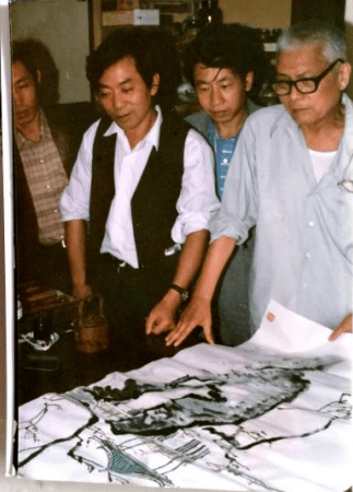 李琼玖(左)、右蹲着作画者盛志忠、背后站立者陈遐龄