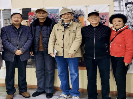 黄仲新、盛志中、余龙、袁林、吴耀、卜敬恆、何兆明(右起)早在作画中